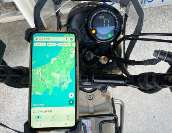 ハンターカブの場合は、ハンドル周りにスマホホルダーを装着した方が使い勝手が向上します。