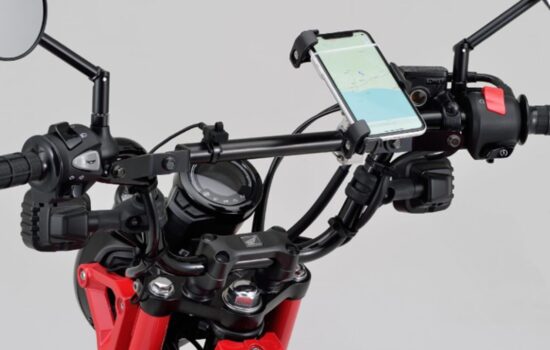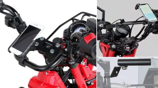 ハンターカブで悩みがちなスマホホルダーの設置位置を確保できます。