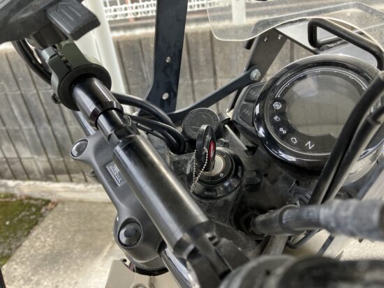 特にハンターカブはハンドル中央に鍵穴があるため、設置位置には注意が必要です。
