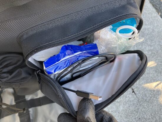 キャンプ場やツーリング先で必要な物を素早く取り出せて便利です。