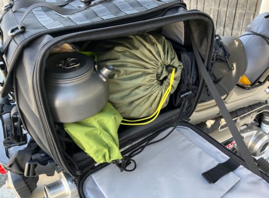 テントや寝袋などのかさばるギアをひとまとめに積めるため、パッキングがスムーズになり、走行中の荷崩れの心配も少なくなります。