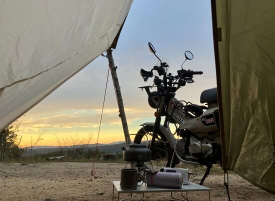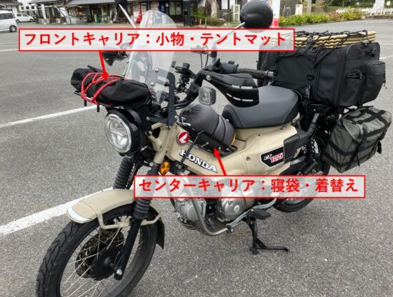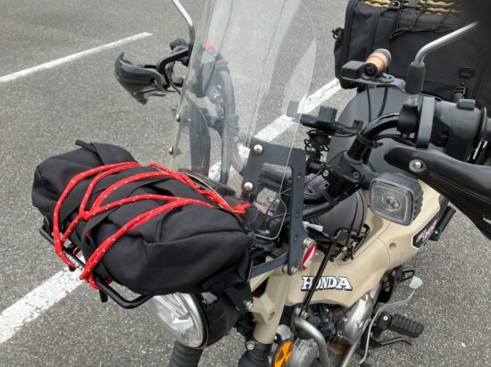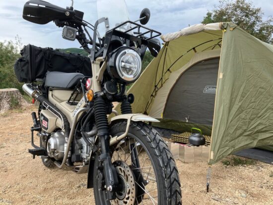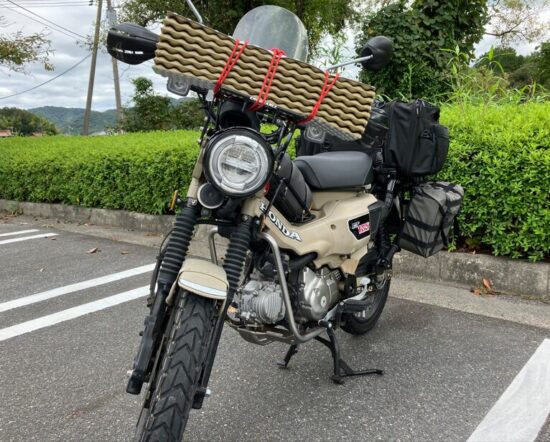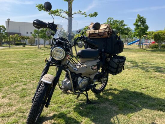 ハンターカブでのキャンプは、工夫次第でいくらでも積載力を伸ばせます。