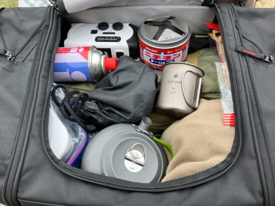 実際に使用してみて、リアボックスを中心に積載計画を立てると、スムーズにキャンプギアが載ります。