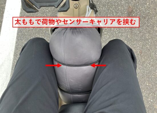 寝袋を積載すると、簡易的なニーグリップが出来るので便利!